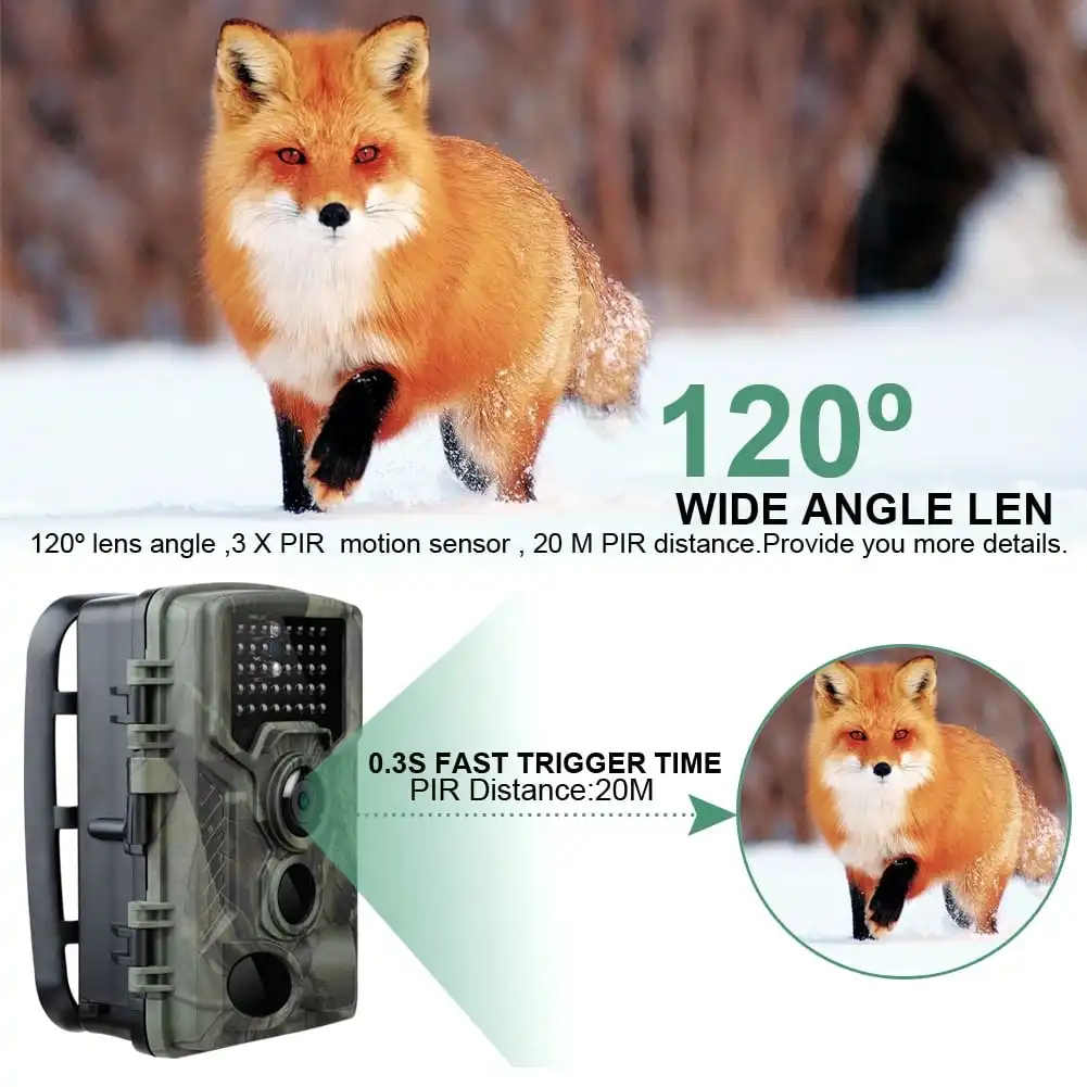 – PIR Detect Range: 120 Degree – Night Vision Distance: 65 ft/20 meters
