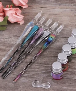 A (3 stk) – Få 1 sæt Crystalyst Glass Pen inkluderer Pen 1 stk + Penholder 1 stk + Ink 1 stk