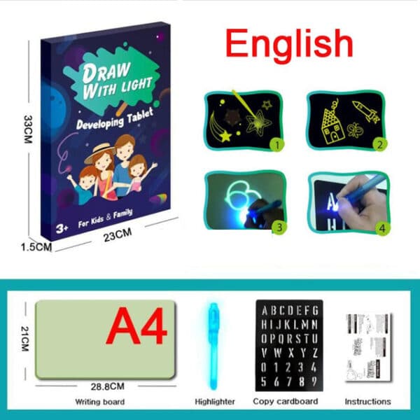 En tablet med et lysakkumulerende betræk, format А4
